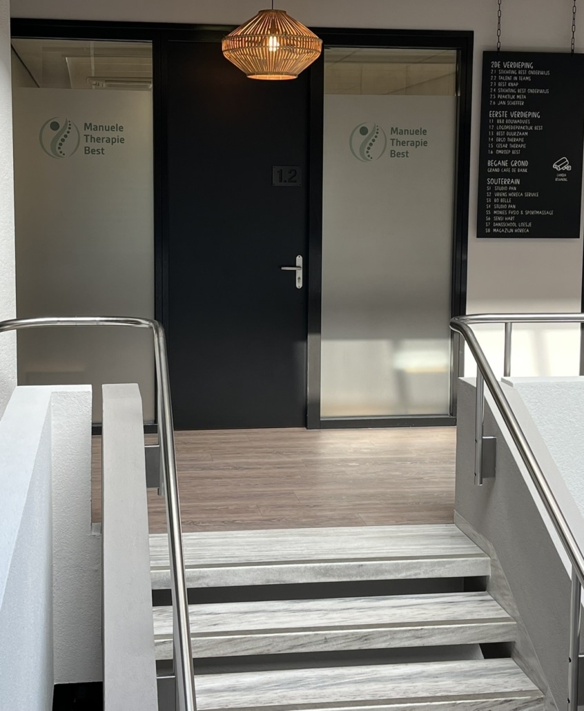 Praktijk voor manuele therapie Best is gevestigd in het centrum van Best, in verzamelgebouw ‘De Bank’. De behandelruimte (1.2) bevindt zich op de eerste verdieping en is zowel met een trap als lift bereikbaar. Manuele therapie is een specialisatie op fysiotherapie en valt zodoende ook onder de aanvullende verzekering voor fysiotherapie.